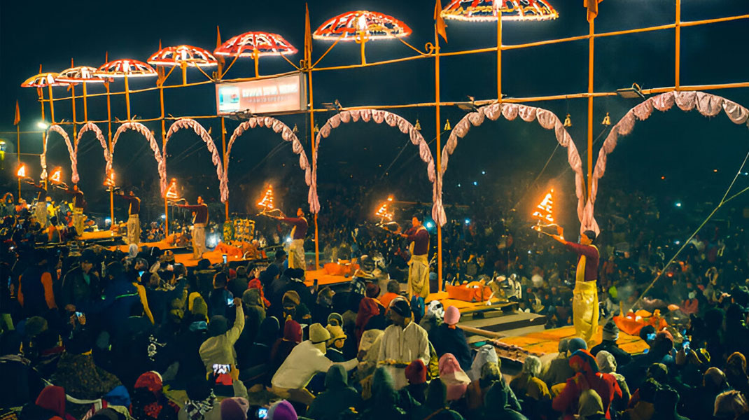 Situated just 1.5 km away, the Ganga Aarti at Dashashwamedh Ghat is a mesmerizing spiritual ritual that attracts numerous visitors. Witness the grand ceremony of fire and prayers dedicated to the Ganges River, creating an unforgettable and divine experience every evening.